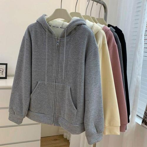 겨울철 데일리 걸스 플리스 캐주얼 플리스이너 후디 집업아우터