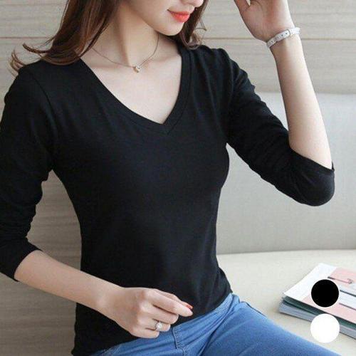[모노무드]LMO 걸스 일상용 브이컷 트렌디 티탑데일리티 여성용 베이직티 브이넥티