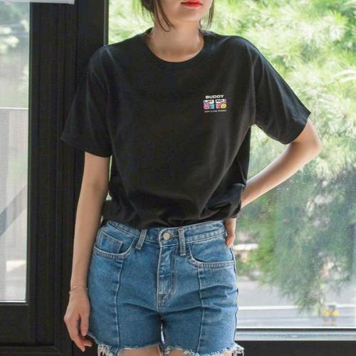 [엄지척]여자 여름 프린팅 검정 레트로 힙한 반팔티_19612766_667501