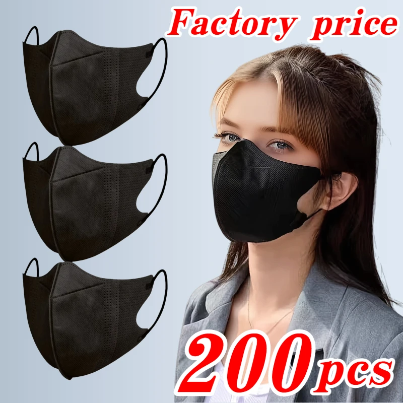 공장 가격! 검정색 일회용 마스크 - 3겹 통기성 및 편안함, 조절 가능한 귀걸이 및 밀착형 코 패드 - 200/100/50/10개, 가정용으로 저렴한 가격, 대량 구매 가능, 야외 활동, 가정, 출퇴근, 사무실, 학교, 남녀 공용에 적합