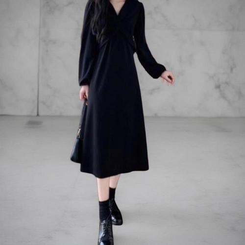 [신상오픈런]|CMO41A5|브다로 긴원피스 A라인 가을 롱슬리브 사무실 여성 검정_18170186_597559