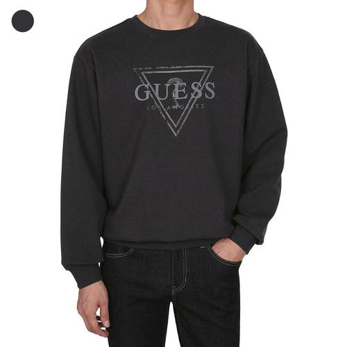 [게스]남성 세미 오버핏 데님 PVC 미니 삼각 맨투맨