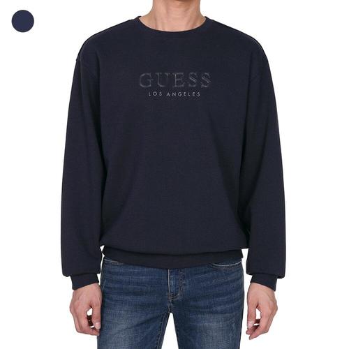 [게스]남성 세미 오버핏 PU 일자로고 맨투맨