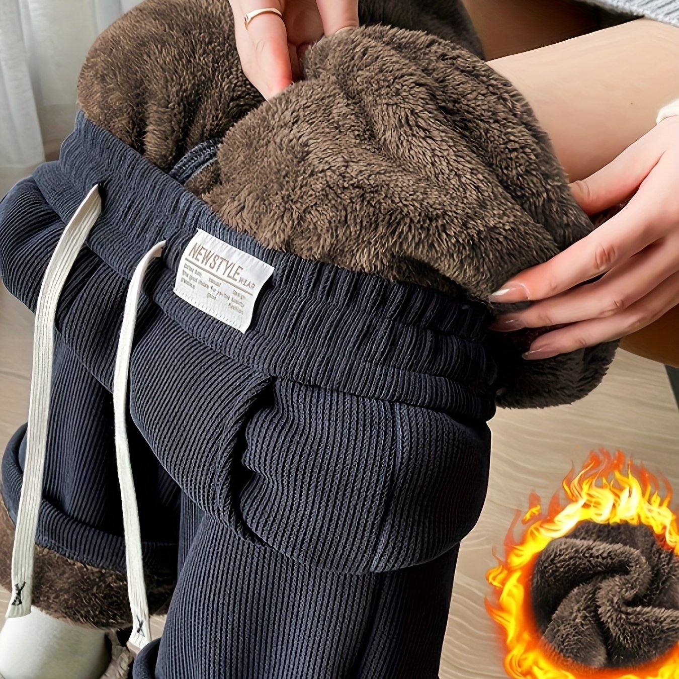 TEMU 여성용 두꺼운 코듀로이 와이드 레그 트라우저 - 겨울 따뜻한 레그 팬츠 (포켓 포함), 단색 캐주얼 트라우저 (가을/겨울용), 세탁기 사용 가능, 여성용 겨울 트라우저, 시즌 패션, 튼튼한 원단, 편안한 착용감, 다용도 하의