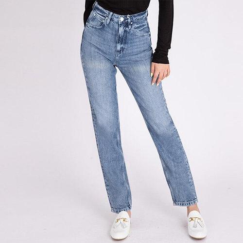 [게스]게스 여성 청바지 핀턱 디테일 맘핏 미디엄블루 YK3D6105