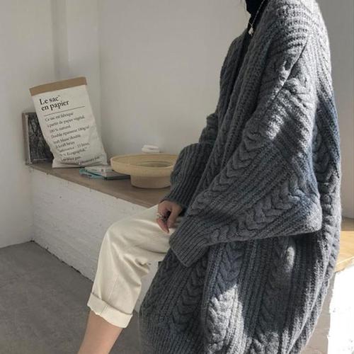 [오너클랜]인기상품 겨울 로브 가디건 여성 꽈배기 롱가디건 회색 롱니트 [W9E9702_250917]