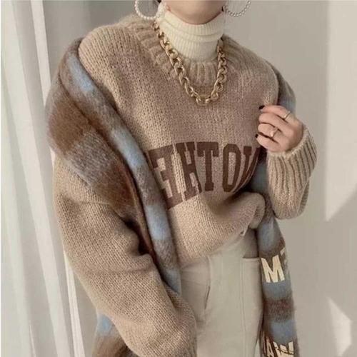[엄지척]여자 가을 겨울 데이트 룩 루즈 오버 핏 니트 코디_19678384_667501