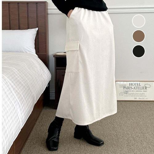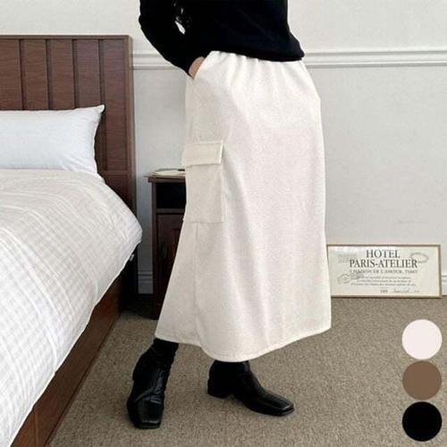 [셀럽하우스]따뜻한 WUQQ8281 겨울 여성 카고 롱 스커트 골덴 코듀로이 치마