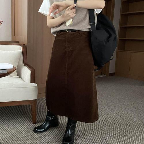 ANYOU 모직 스커트 코듀로이 스커트 가을 겨울 치마 롱 스커트 데일리베이직 스커트