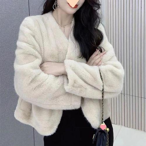여성 자켓 겨울 빈티지 넥 반코트 따뜻한 모피라이크 양면 코트 OP4