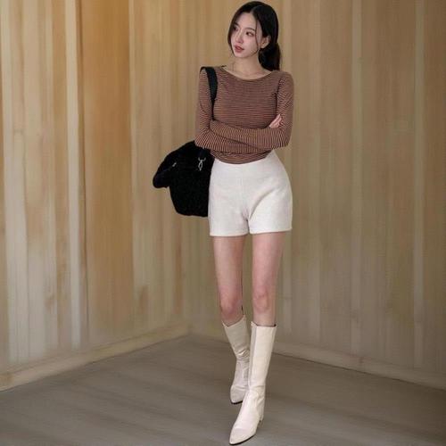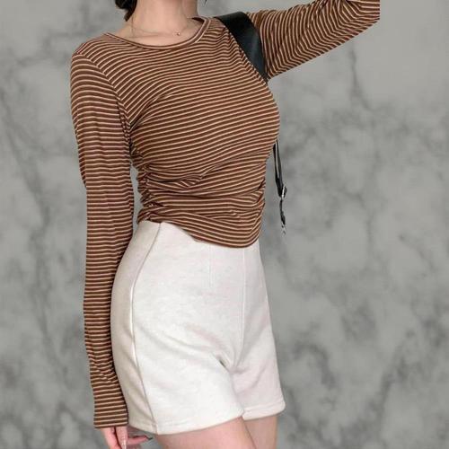 [옷자락]여성 가을 겨울 시즌 따뜻한 스트라이프 긴팔 티셔츠