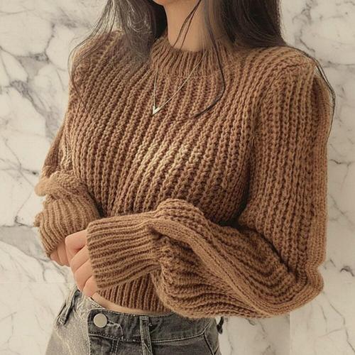 [옷자락] 여성 겨울 시즌 포근한 두꺼운 크롭 니트