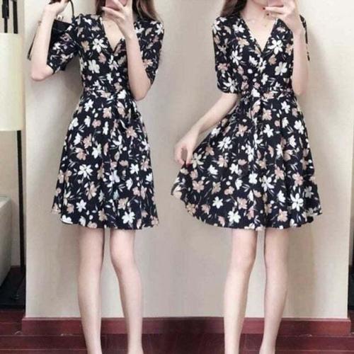 [르뚜앙]리보솜 블랙 쉬폰 랩 키작녀 미니 원피스 봄 가을 결혼식 하객룩 오피스룩 연말파티룩