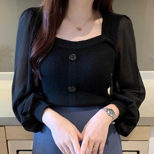 [엄지척]여자 하객 룩 결혼식 니트 쉬폰 긴팔 블라우스 코디_19651243_667501