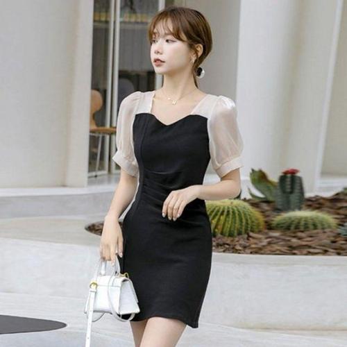 [셀럽하우스]여성원피스 HKPU6406 결혼식 하객룩 상견례 미니 반팔 편 GWM