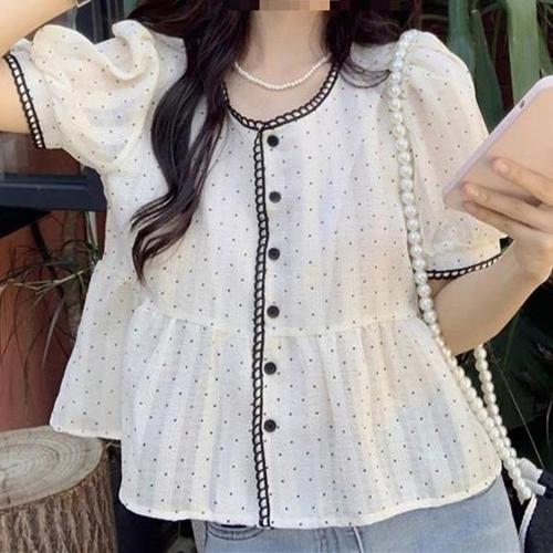 [엄지척]여성 결혼식하객 도트 플레어 블라우스_19609899_667501