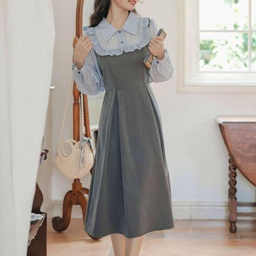 프렌치 경성드레스 긴팔 복고의상대여 투피스 복 WFLQB1U