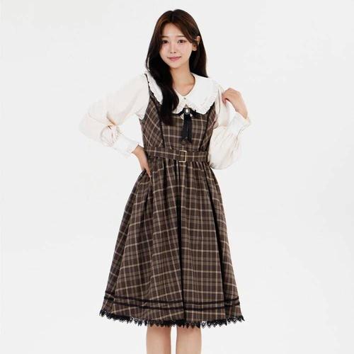 브라운체크 경성의상대여 개화기드레스 레트로 개 WFLQB1T