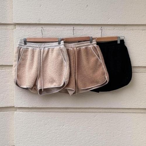 [다잇템]여자 FW 호피 고무줄 와이드핏 양털쇼츠 반바지