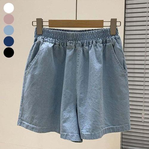 니어샵 여성 와이드 데님 워싱 버뮤다 팬츠 5부 밴딩 청반바지