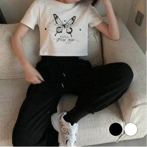 [엄지척]나비프린팅 힙스터 엣지 바이브 크롭 반팔 티셔츠_19610584_667501