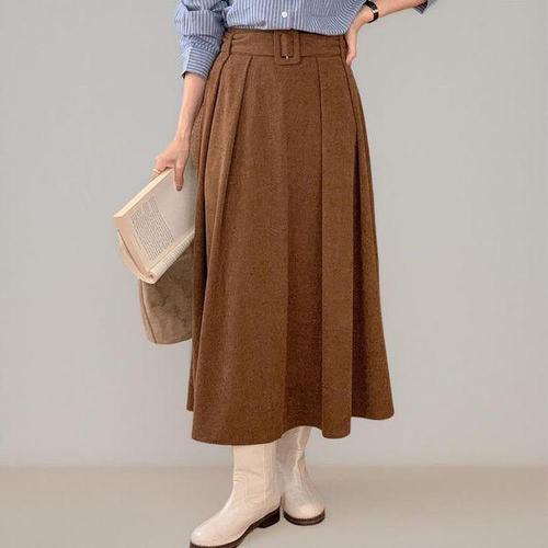 [신상오픈런]여성 가을 골덴 롱 플레어 스커트 벨트 포함