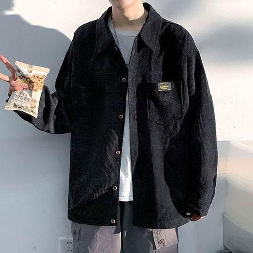 [에이치플러스몰]남성 루즈핏 골덴 셔츠 자켓 블랙