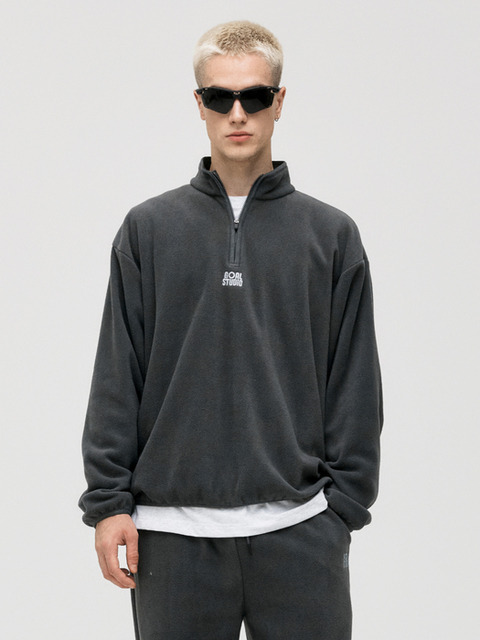 [골스튜디오] ESSENTIAL MICROFLEECE QUARTER ZIP-UP TEE-CHARCOAL