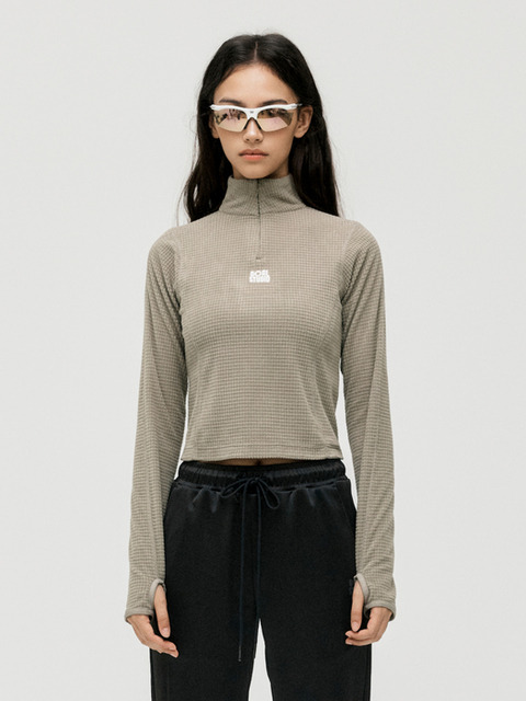 [골스튜디오] WS GRID FLEECE QUARTER ZIP-UP TEE-DARK BEIGE