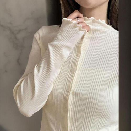 [옷자락]여자 여리핏 롱슬리브 골지 스판 스냅 카라넥 가디건