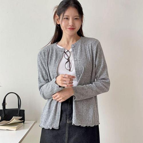 [다잇템]여자 단추 라운드 골지 일상룩 롱슬리브 가디건