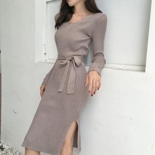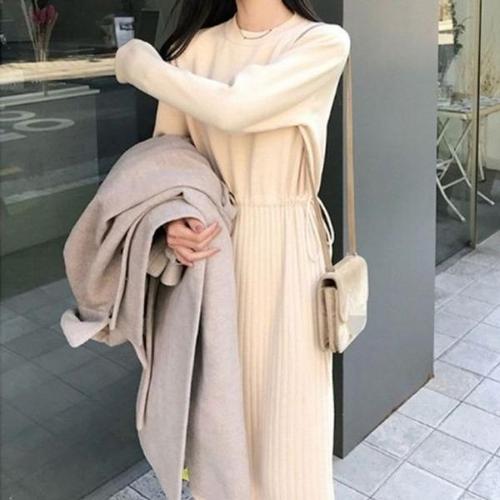 [엄지척]가을 겨울 여성 허리끈 골지 니트 롱 원피스_19912204_667501