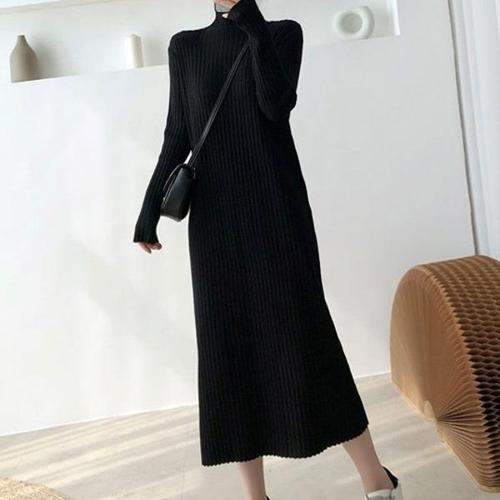 [엄지척]골지 니트 목폴라 슬림 일자핏 롱 원피스_19913152_667501