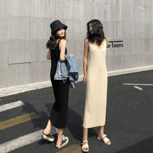 [엄지척]사선 골지 니트 롱 원피스 브이넥 여름 나시 데일리_19912293_667501