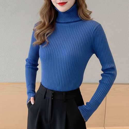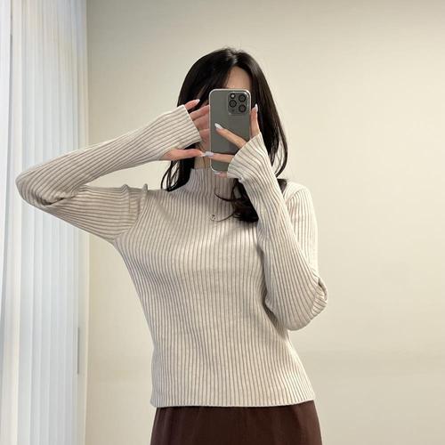 여성 반폴라 골지 니트티 베이직 터틀넥 목폴라 긴팔 니트 슬림핏 겨울 이너티