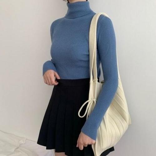 [엄지척]여성 데일리 골지 니트 스웨터 목폴라 티셔츠_19680739_667501