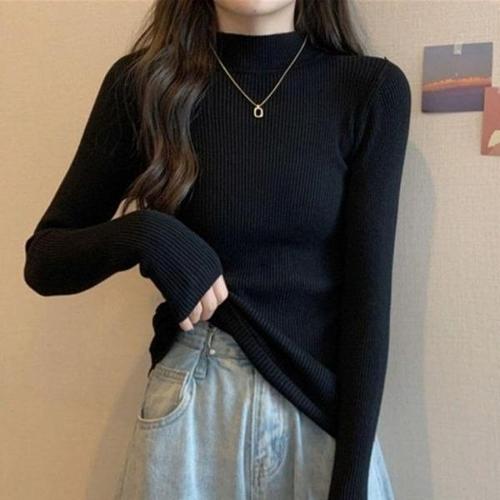 [엄지척]여성 슬림핏 골지 반목 하프넥 니트 목폴라 티셔츠_19681341_667501