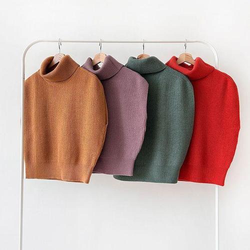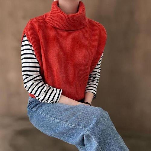 [신상오픈런]여성용 터틀넥 골지 캡소매 루즈핏 가을 겨울 니트 베스트