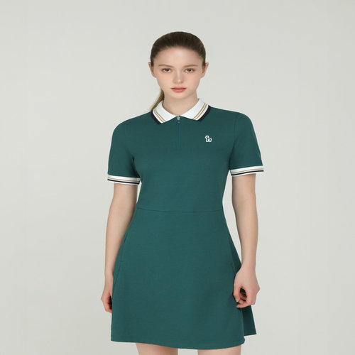 헤지스 골프 여성 [ONLINE EXCLUSIVE] 그린 여성 배색 카라 원피스 (HWDR5B991E3)