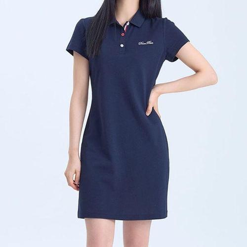 [에이치플러스몰]여성 네이비 PK 카라 에센설 골프 스포츠 반팔 원피스