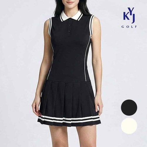 [김영주골프]여름 플리츠 카라넥 스판 배색 여성 민소매 골프 원피스 DQMLOP25