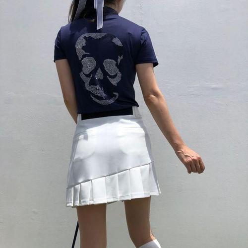 [로로얼로이]여성 골프티셔츠 쿨링 냉감 앗 차가워 기능성 스컬 카라 반팔 여름 탑 라운딩룩 필드룩