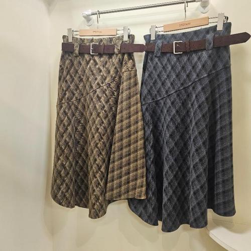 [스테파니]스테파니 HC07 벨트 포인트 체크 언발란스 스커트 A25SK5413 (44023025)