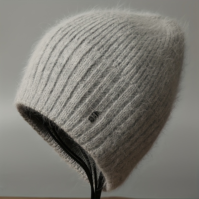 TEMU 가을 겨울 신상 울 실모자, 두꺼운 털모자, 겨울 야외용 보온 귀보호 모자, 큰 머리둘레 방한 모자