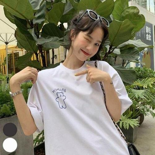 [셀러허브_여성트랜드패션]반팔 곰돌이 티셔츠 오버핏 반팔티 라운드넥 박시