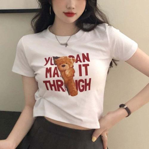 [셀러허브_여성트랜드패션]곰돌이 ERD-013 영문 반팔티 크롭