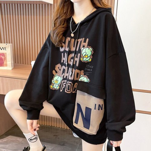 나바바 / NT1975 곰돌이 레터링 프린트 후드 긴팔 맨투맨