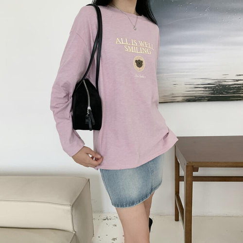 [옷자락] 여성 러블리 곰돌이 나염 면혼방 라운드넥 긴팔티