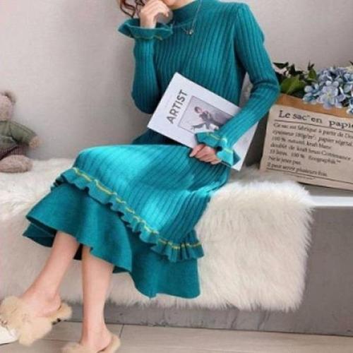 [엄지척]LC8800 슬림핏 소매 밑단프릴 여신핏 롱니트원피스_19870256_667501