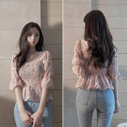 [엄지척]여성 허리핏 밴딩 블라우스 공주 셔링 스타일_19651113_667501
